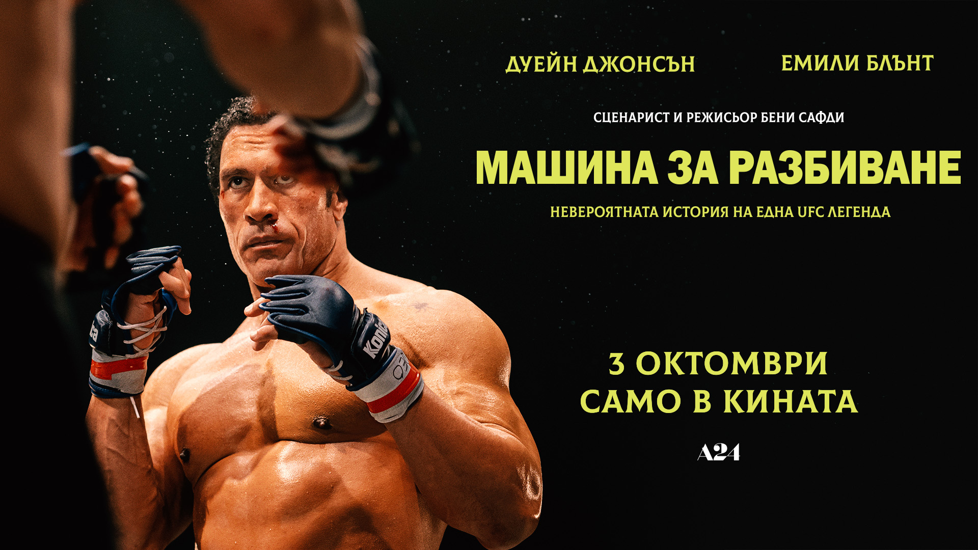 Машина за разбиване – биографичната спортна драма за живота на UFC легендата Марк Кър, с който световната екшън звезда Дуейн Джонсън прави най-различната си и трансформираща роля до момента. Режисиран от Бени Сафди, който прави соловия си дебют зад камерата след поредица от изключително успешни колаборации със своя брат Джош (Heaven Knows What, Good Time, Uncut Gems), филмът разкрива завладяваща невероятна история за болката, славата и цената на успеха.
